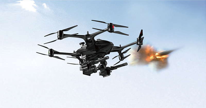 哈瓦特種裝備無人機火控系統:單架次同時掛載36倍變焦攝像模塊+喊話模塊+雙槍模塊, 可前射10發爆震彈/催淚彈/沙暴彈/生化彈/煙霧彈/子母彈