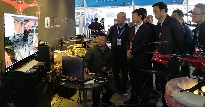 哈瓦特種裝備無人機以行業前沿技術產品,警用專業解決方案受到中國安防協會秘書長張忠孝(上圖左三)等業界專家肯定,熱情周到的服務也盡顯團隊專業,備受展臺觀眾好評。特別是哈瓦戰斧H-16察打一體無人機和整體解決方案獨占鰲頭,閃耀全場。