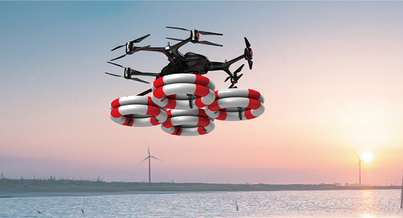 哈瓦救援無人機救生圈系統:單駕次搭載8個救生圈,可單個依依投放。并同時搭載36倍攝像系統與喊話系統,實現精準拋投及拋投提醒。