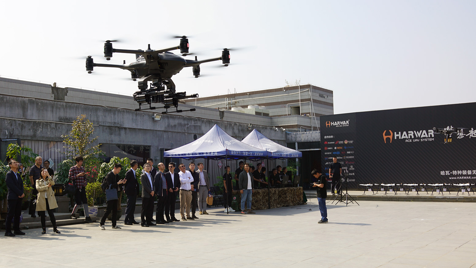 座談會后,夏衛東總隊長及一行領導來到哈瓦無人機演示平臺觀看無人機飛行演示。